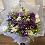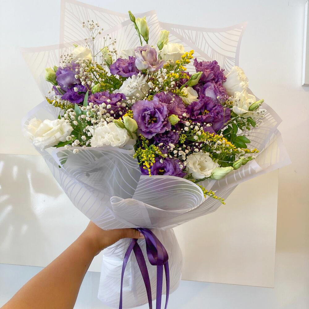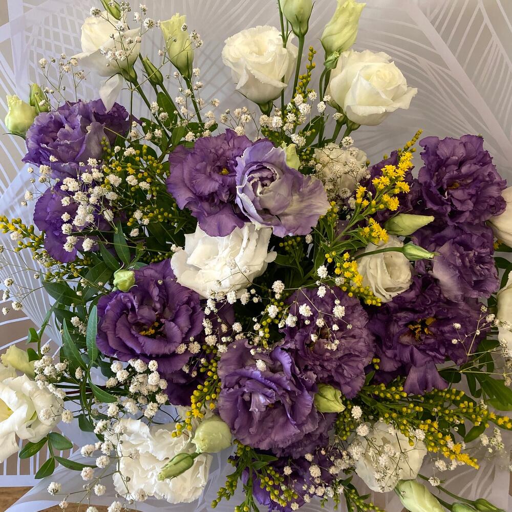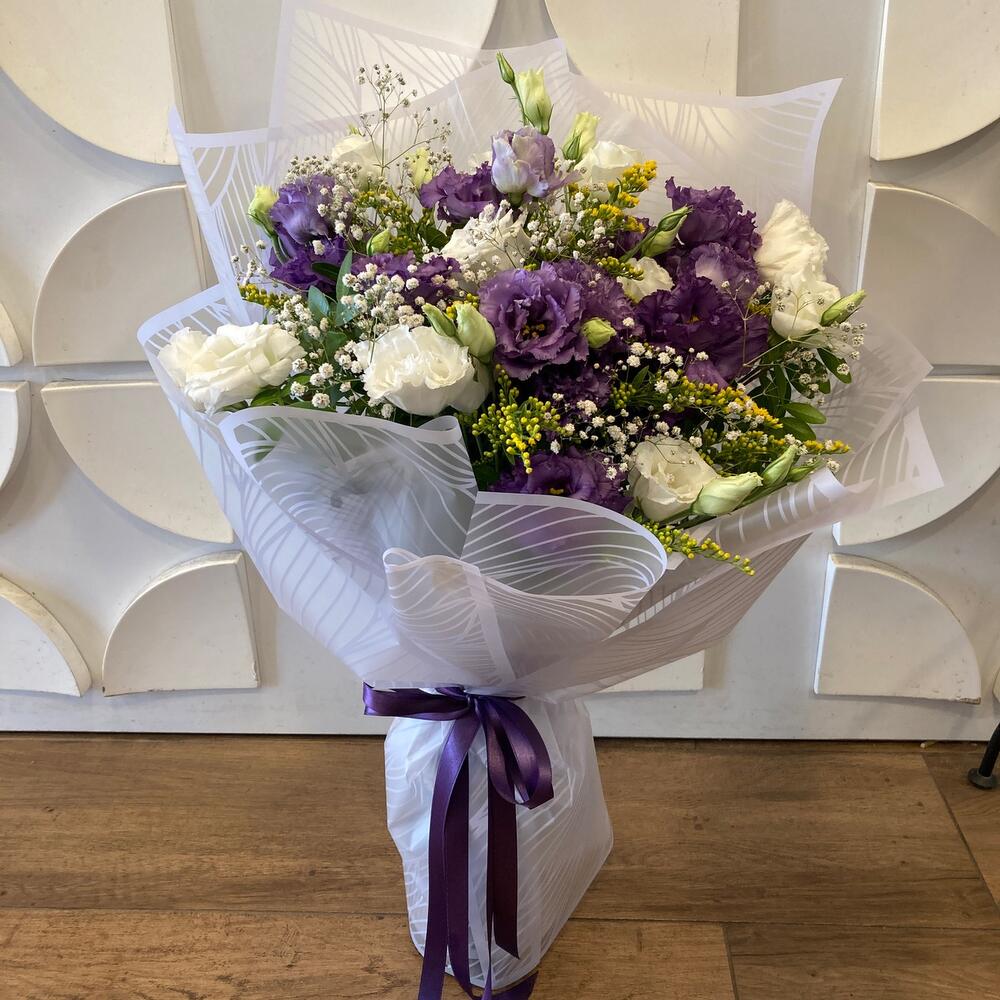белый эустома - 5 шт. больше лизиантусов - 7 шт. зелень и гипсофила - 10 шт.