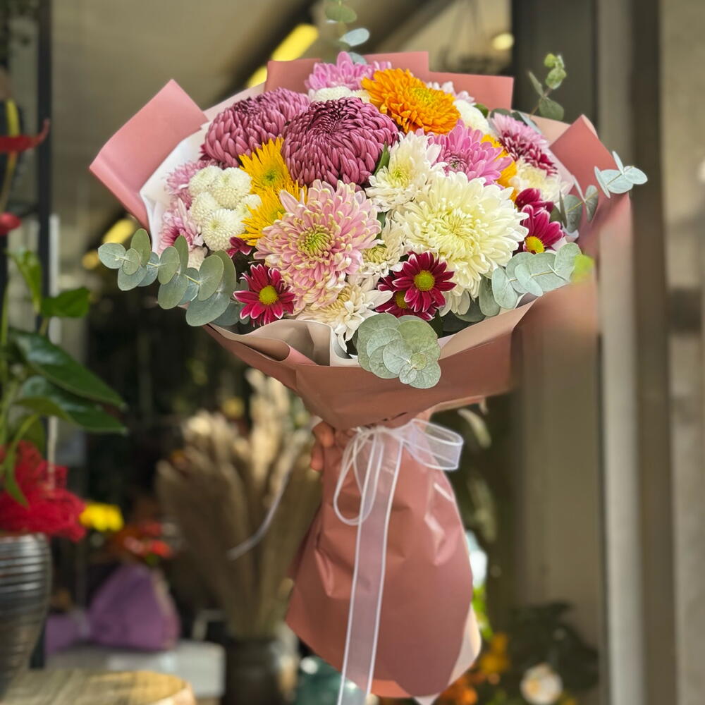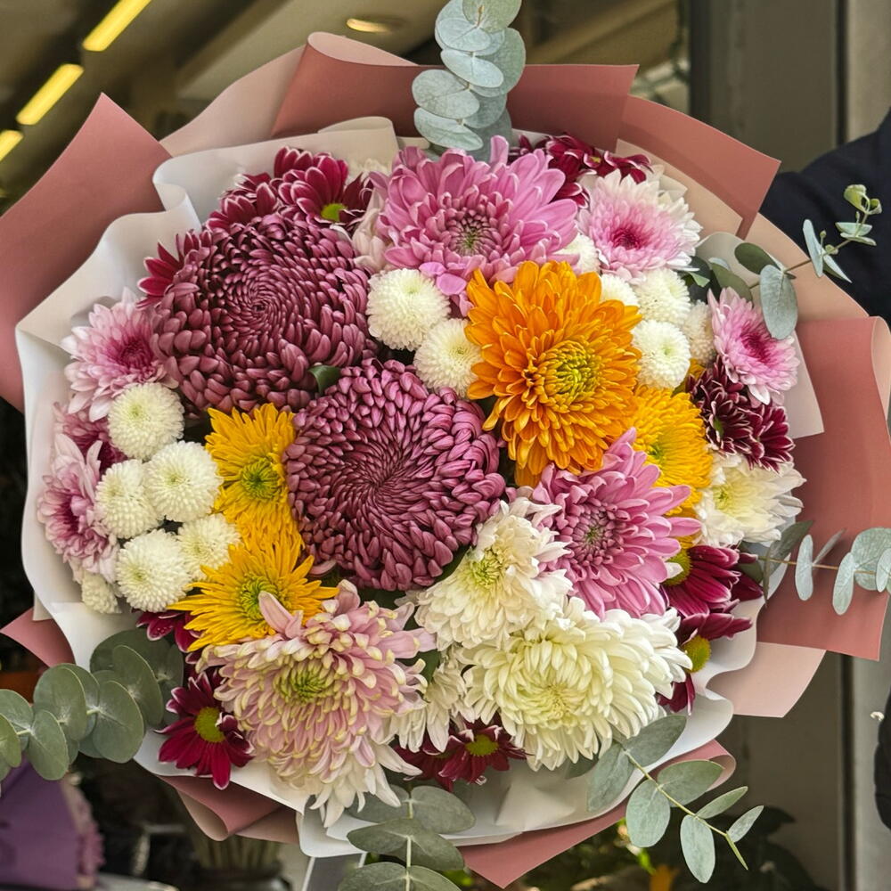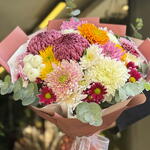 Красочный букет касымпаты и хризантем, созданный с современными акцентами, своими энергичными красками придаёт жилым пространствам свежесть и динамизм. Благодаря минималистичному и изящному внешнему виду он является отличным подарком для любителей как классического, так и современного стиля. Этот дизайн, подготовленный из тщательно отобранных свежих цветов, сочетает в себе любовь, радость и позитивную энергию. Идеальный выбор, чтобы украсить ваш день или добавить красок вашим близким.