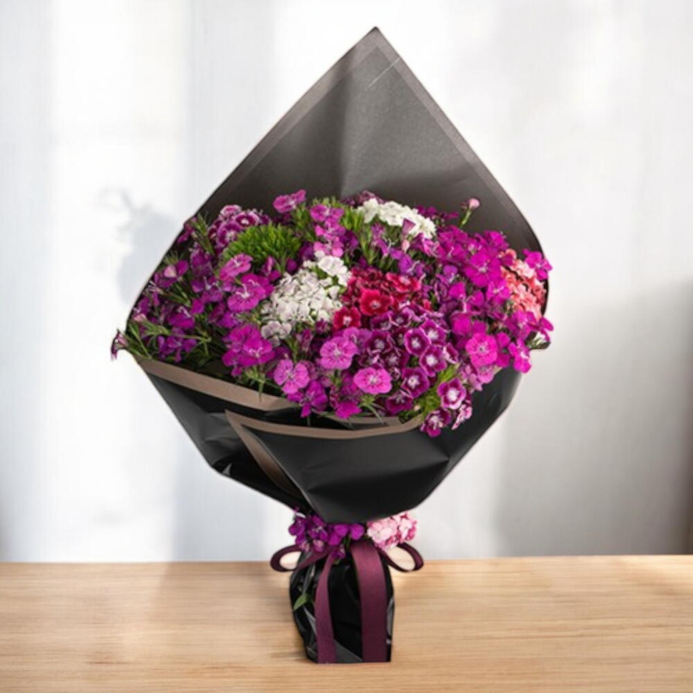 Этот элегантный букет из душистого шалфея — идеальный подарок, чтобы показать своим близким, как сильно вы их цените. Этот особый дизайн включает 12 ярких и красочных стеблей душистого шалфея, обернутых в чёрную бумагу, что создаёт уникальный визуальный образ. Каждый цветок излучает необыкновенную гармонию и элегантность. Все 12 цветов вместе создают великолепное сочетание. Этот букет идеально подходит для того, чтобы произвести неизгладимое впечатление.