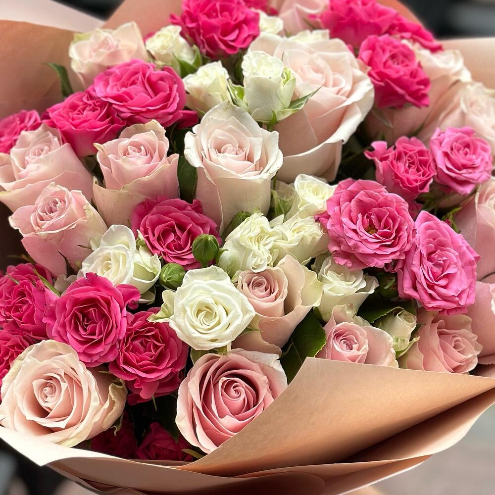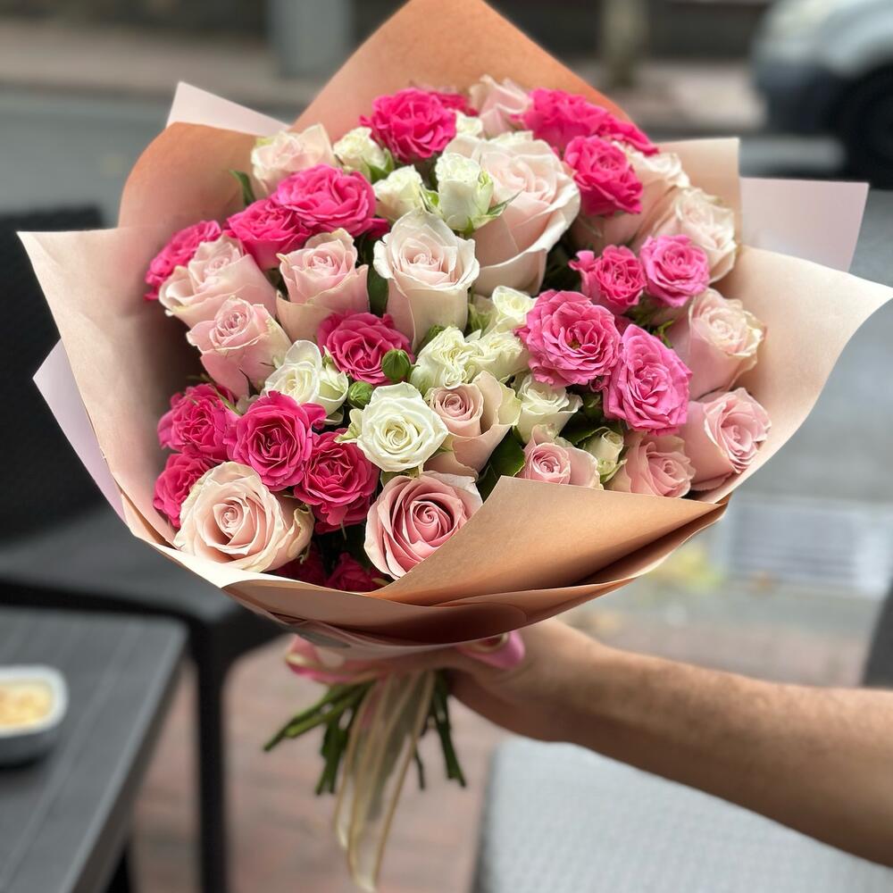 Изделия из смешанных роз изготавливаются из роз первого качества.