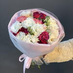 Маттиола - 2 шт. Кустовая роза - 3 шт. Гвоздика - 2 шт. Эустома - 8 шт.