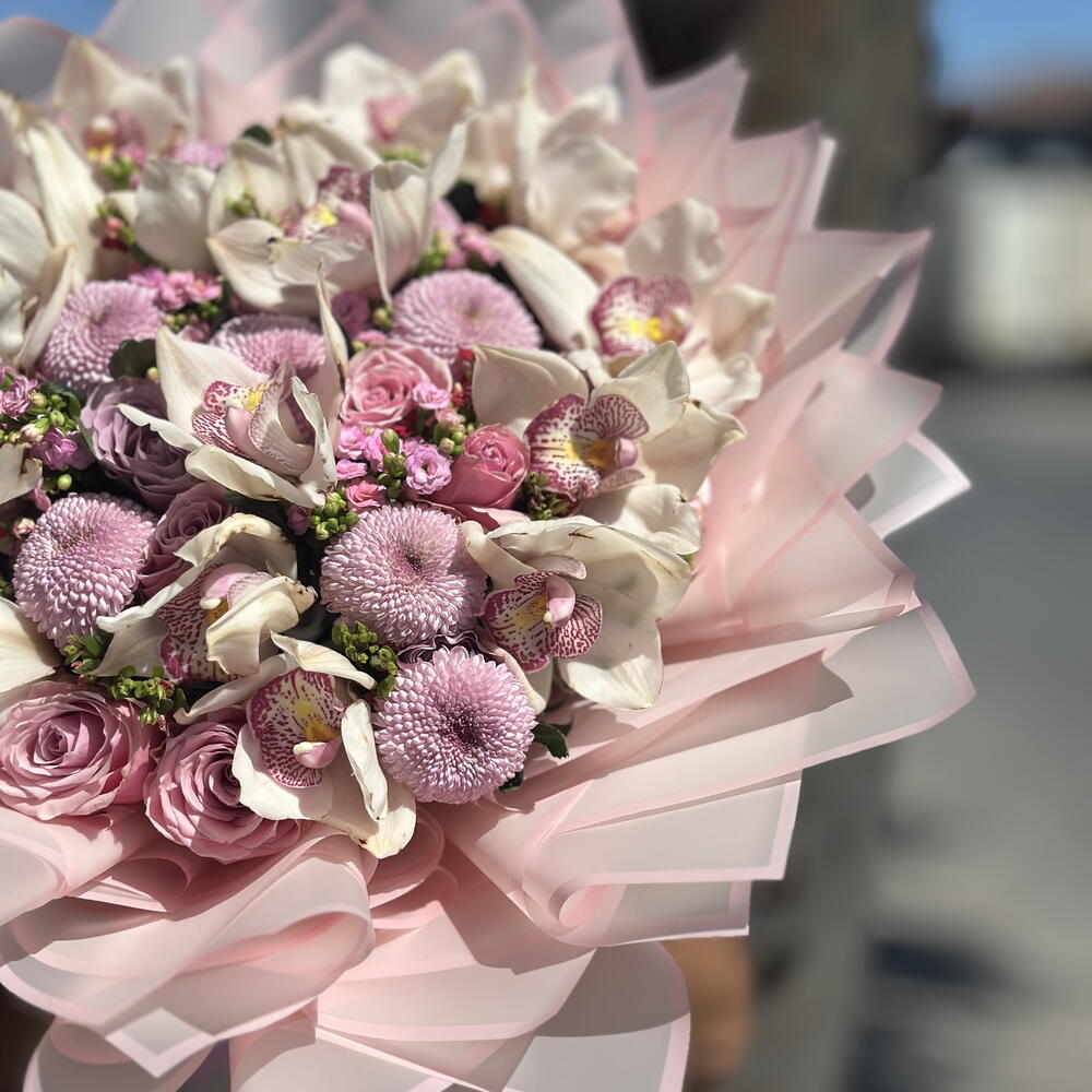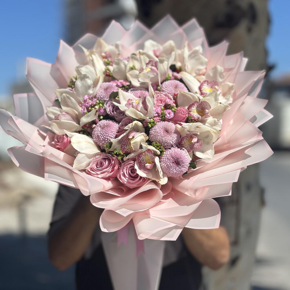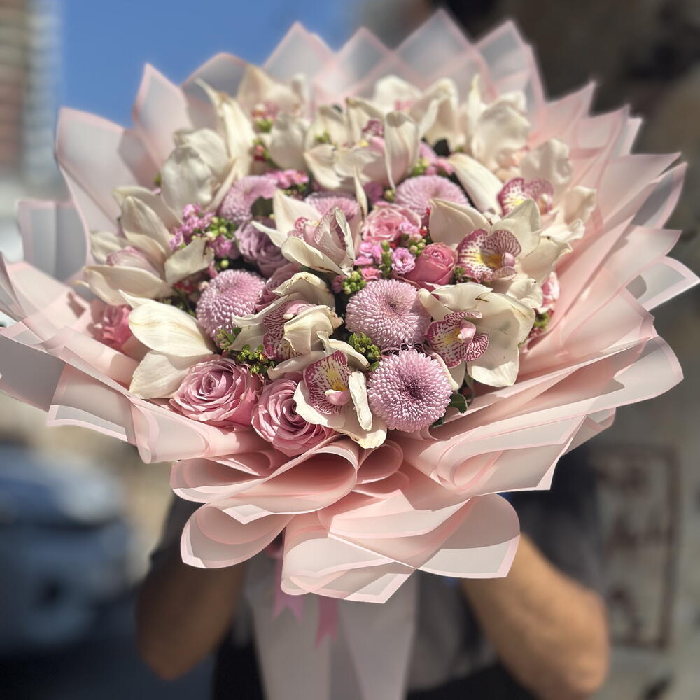 Этот товар относится к категории «Смешанный букет», представляющей собой элегантный букет. В его составе находятся 10 нежных момоко, 10 розовых роз, символизирующих романтику и изящество, и 20 срезанных орхидей с неповторимой красотой. С помощью этого букета выразите свои чувства близким самым красивым образом!