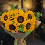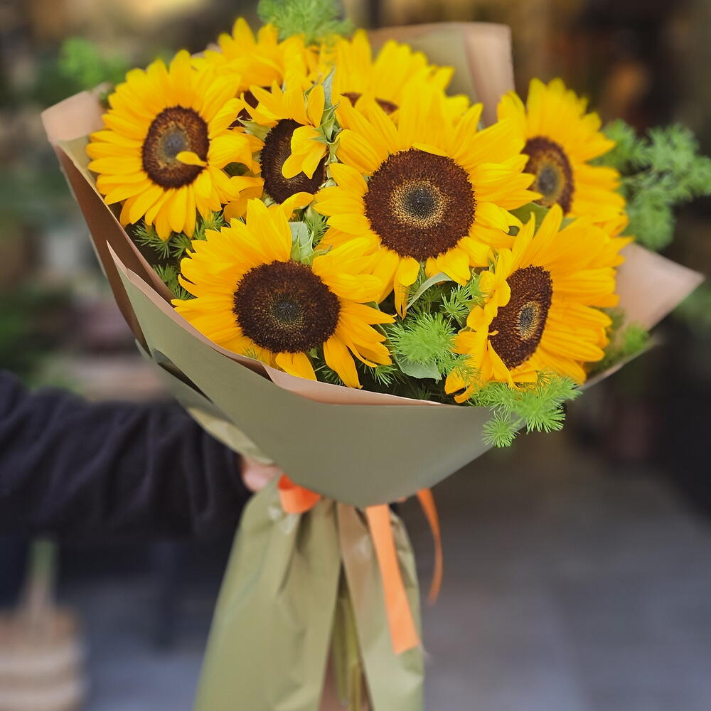 Этот впечатляющий букет цветов полон специально подобранными 11 штуками подсолнухов. Каждый из них представляет собой самые красивые цвета природы, состоящие из ярких желтых оттенков, которые принесут радость и энергию вашим близким. Этот букет подсолнухов будет отличным подарочным вариантом как для особых, так и для обычных дней. 11 подсолнухов создают впечатляющий вид и поразительный эффект. К тому же, эти цветы долговечны и предложат их получателю длительное счастье.