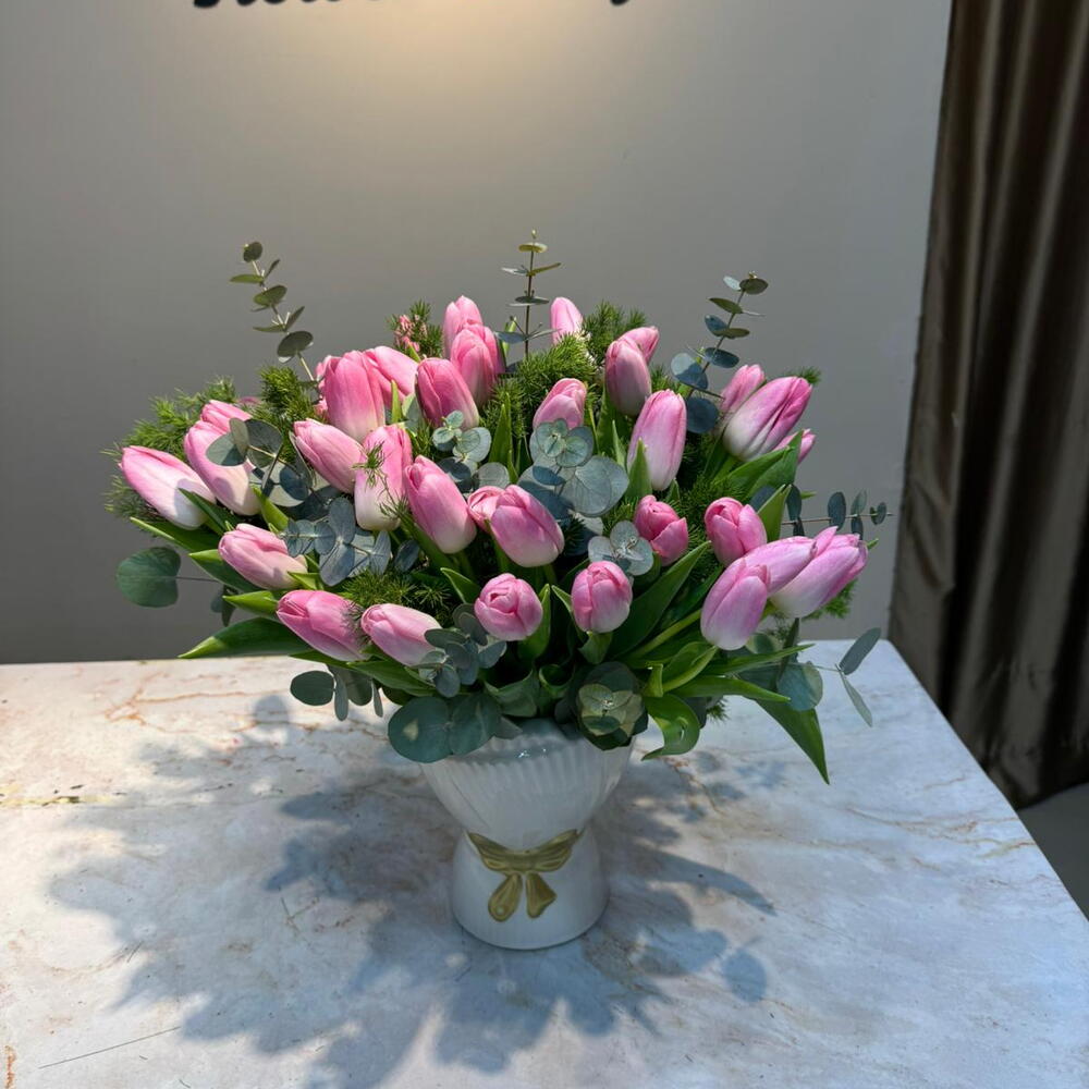 okaliptüs - 20 шт. розовый тюльпан - 40 шт.