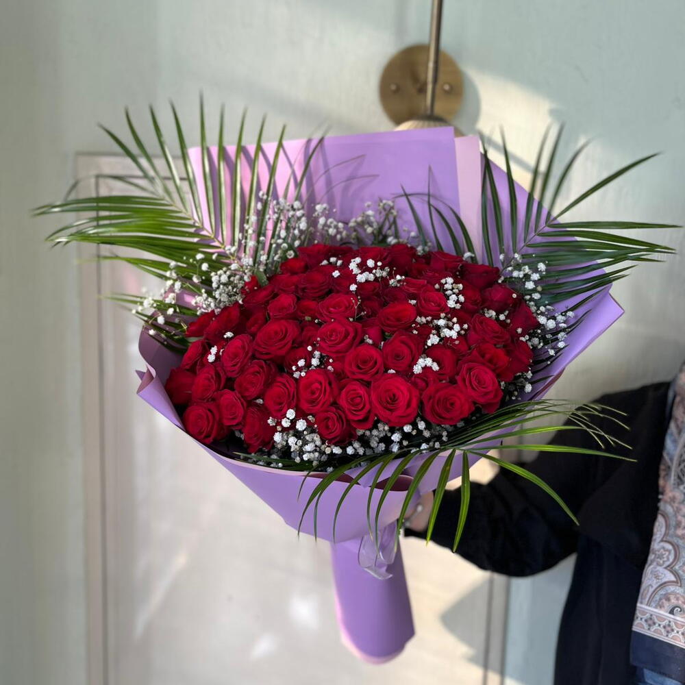 Букет из 51 красной розы в сиреневой бумаге – это впечатляющий дизайн, сочетающий в себе элегантность и любовь. 51 тщательно отобранная свежая красная роза в современной упаковке сиреневого оттенка – это роскошная форма романтики. Это идеальный способ выразить свои чувства на День святого Валентина, годовщину свадьбы или любой другой праздник. Этот VIP-букет роз, дополненный элегантной сиреневой упаковкой и зелеными пальмовыми листьями, выразит вашу любовь самым изысканным образом. 🌿 Характеристики товара 51 свежая красная роза Специальная сиреневая упаковка Украшение пальмовыми листьями и гипсофилой Романтичный и элегантный дизайн VIP-подарок для особых случаев Этот потрясающий букет из 51 красной розы сочетает в себе магию и элегантность любви, создавая незабываемые впечатления от подарка.