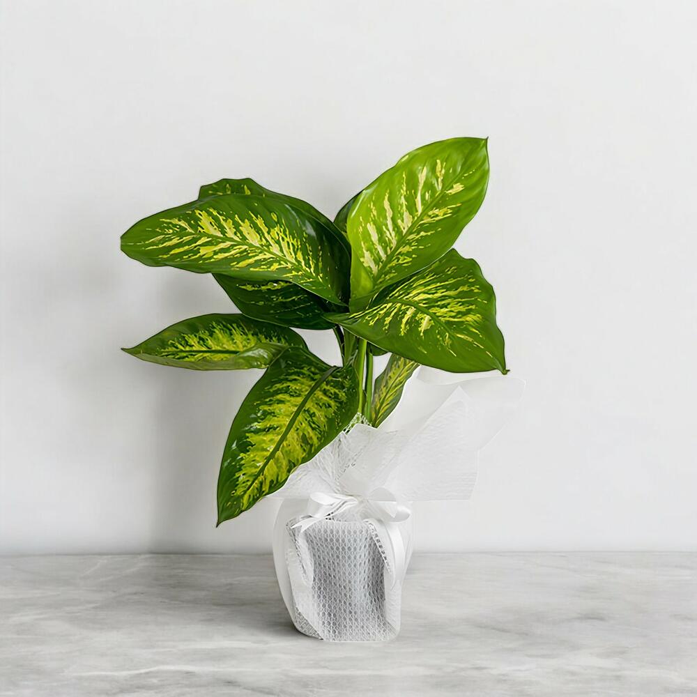 Диффенбахия — растение, придающее интерьеру тропическую атмосферу своими изящными и эффектными листьями. Широкие зелёные листья с желто-белыми узорами придают помещению элегантность и природную свежесть. Благодаря свойству очищать воздух это растение — отличный выбор для дома и офиса; оно легко в уходе и долговечно.