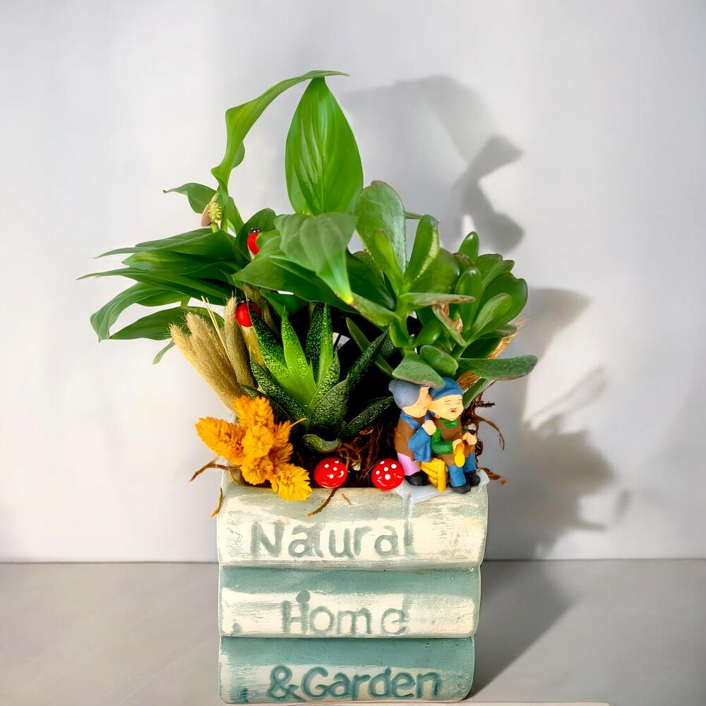 📌 Состав растений: Spathiphyllum (цветок мира) - 1 шт. 🌿 Aloe Vera - 1 шт. 🌱 Crassula (денежное дерево) - 1 шт. 🍀 Декоративные сушёные цветы и аксессуары 🍄👵🏻🧓🏻 ✨ Натуральная и умиротворяющая декоративная композиция! Отличный выбор, чтобы добавить тепла в дом или офис. 🏡🌸